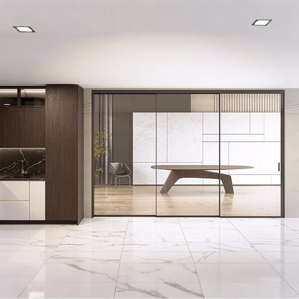 3. Flexibel skiljevägg: Den kan användas som en vardagsrumsbalkongvägg, köksdörr, garderobsdörr etc., utan att påverka belysningen och optimera den rörliga linjen.